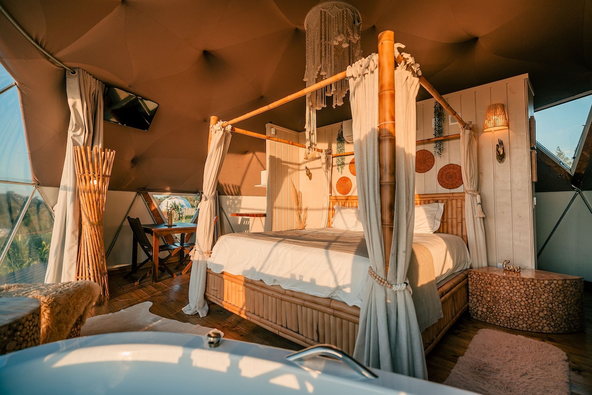 Esphera Glamping, situé à Gravataí/RS. Au milieu de la nature et entourée d'infrastructures, nos cabanes ont cette belle forme géniale ! Pour vivre cette tendance mondiale qui est glamping avec beaucoup de style et de personnalité ! Esphera, fait référence à la forme de nos dômes géodésiques et à l'atmosphère particulière que nous créons ici. Aventurez-vous en toute sécurité et échappez à la routine avec confort. Venez vivre une expérience incroyable.