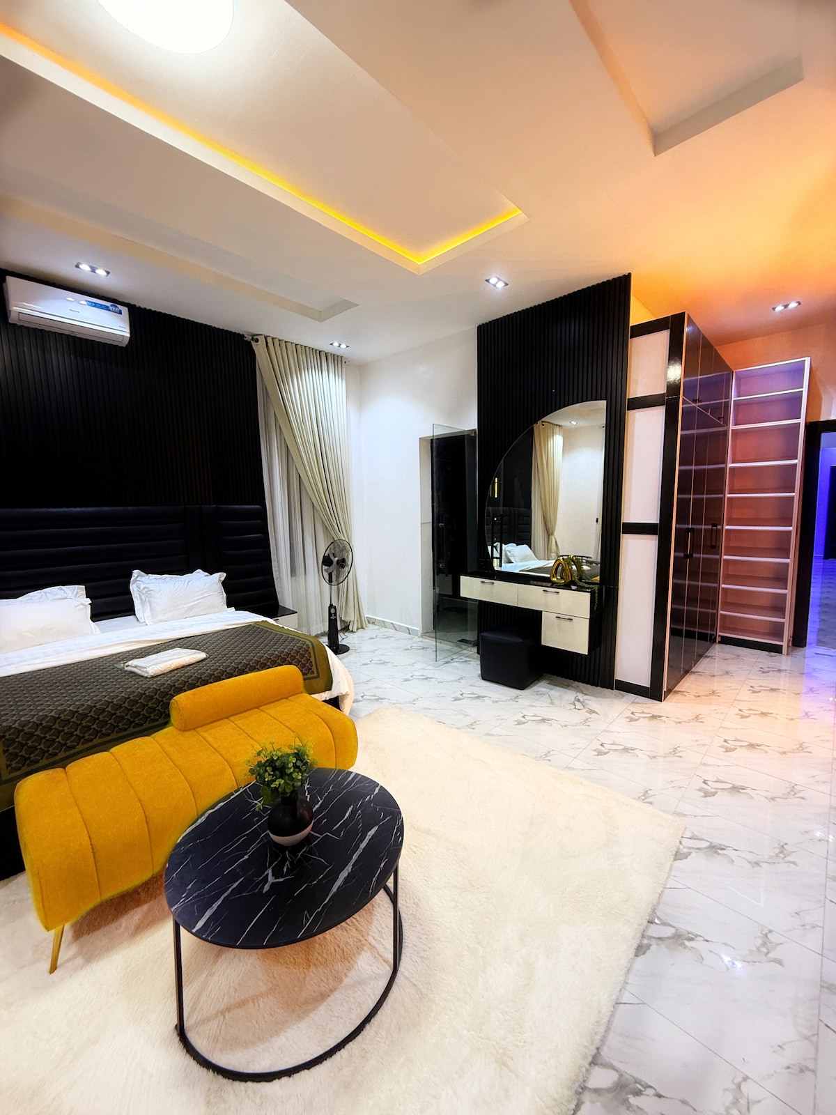 Inspiré par New York et Dubai High Rising Luxury, cet appartement de 2 chambres situé au cœur de l'île Victoria est une première en son genre et offre une expérience unique aux voyageurs à la recherche de quelque chose de différent de la norme. Avec une vue imprenable sur l'eau depuis le confort de votre chambre et une ligne d'horizon magique scintillante d'Ikoyi la nuit, votre séjour à Lagos, au Nigeria, est plus excitant que jamais. des équipements comme Ps5, piscine, court de tennis et bien plus encore sont tous à votre disposition.