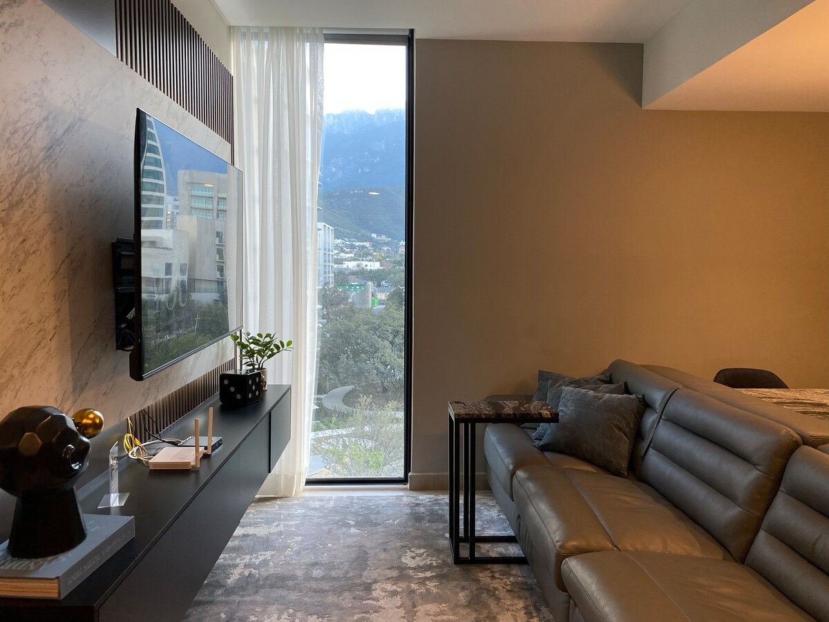 Appartement de luxe complet avec la meilleure vue de Monterrey, entièrement équipé, idéal pour les vacances d'affaires ou de plaisir, excellent emplacement, sécurité 24h/24, intimité, ascenseurs, entièrement meublé, WiFi, télévision payante, climatisation (chaud et froid), parking privé, le bâtiment dispose également d'une zone commerciale où vous pouvez trouver des restaurants et un dépanneur 24h/24.