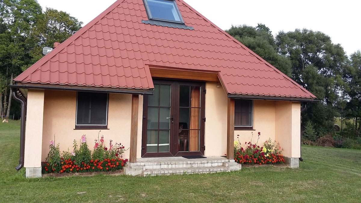 Petite maison paisible - Cabane Skrunda 🏡 - Chalet nettoyé, Skrunda, près de la plus grande rivière Venta. 🏘🌅 - Pour un endroit idéal pour une escapade romantique à deux ou des escapades en famille avec des enfants. - La maison dispose de deux étages, au rez-de-chaussée salon avec canapé double et télévision☕️, salle de bain et coin cuisine équipée d'un réfrigérateur, d'un micro-ondes, d'une bouilloire électrique, de vaisselle et de couverts. Au deuxième étage, un coin couchage avec un lit double. 🛏