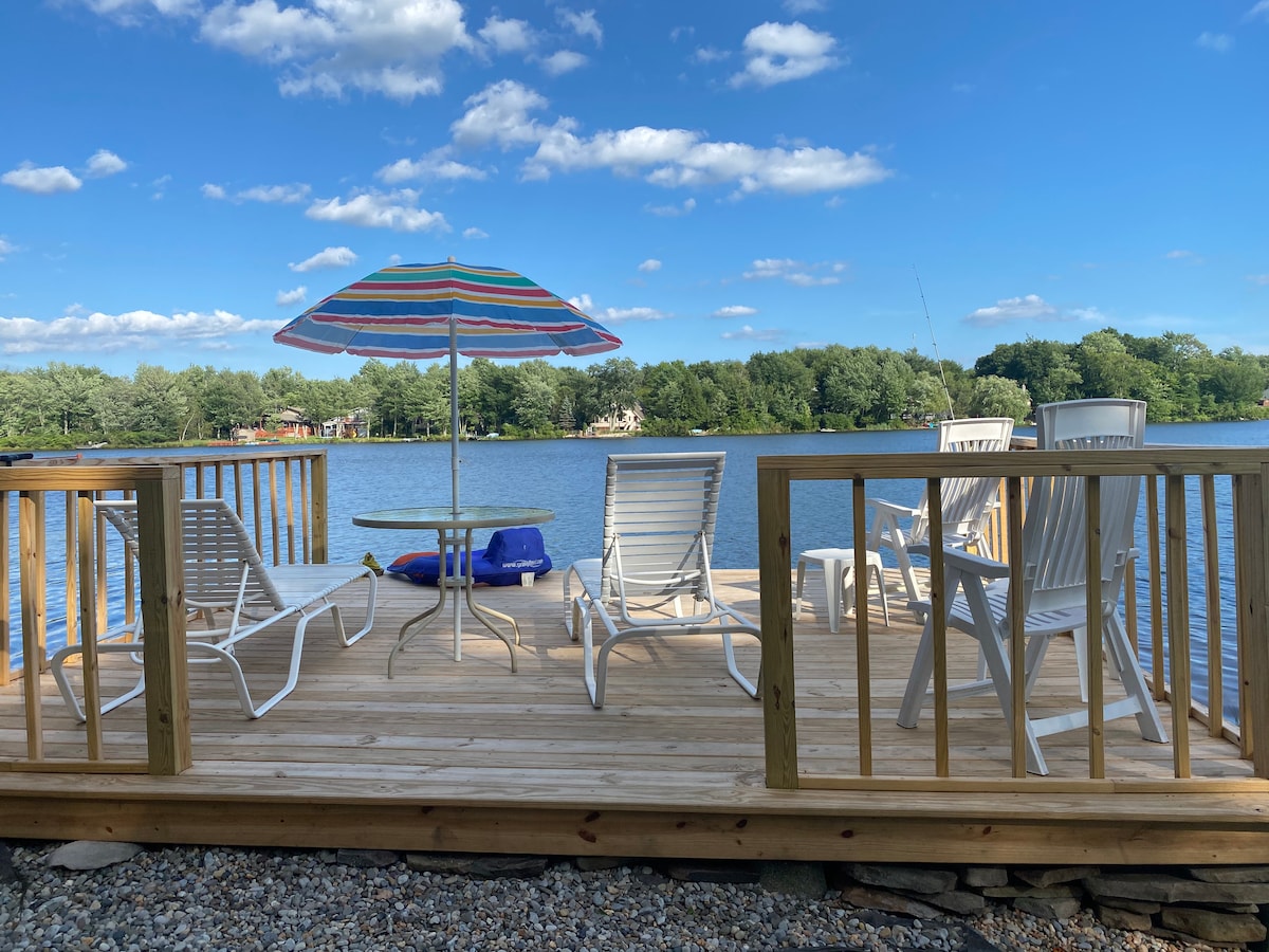 Située au cœur des Poconos, cette belle maison de 4 chambres en bord de lac a toutes les commodités que vous recherchez! On a ajouté des promotions pour les jours de semaine! La maison dispose d'un salon bien éclairé, d'une salle à manger, d'une cuisine et d'une salle de jeux. Animaux de compagnie 100 $/nuit (max 2) La cour arrière avec la terrasse et la vue sur le lac est quelque chose que vous n'oublierez jamais... Nous sommes proches du Kalahari, des stations de ski et des centres commerciaux. Venez profiter de cette spectaculaire maison en bord de lac pour des vacances inoubliables!