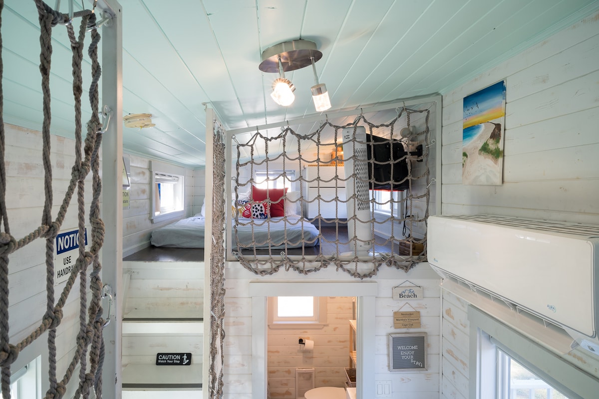 Dans une retraite privée de 14 acres à la campagne, cette petite maison offre une expérience de logement inoubliable. Notre maison Cargo innovante est équipée d'équipements haut de gamme, notamment un matelas Queen Size de 14 pouces avec des draps de luxe, une télévision connectée, un porche privé, un parking pratique, une connexion Wi-Fi gratuite, une kitchenette entièrement approvisionnée, une cafetière Keurig et bien plus encore ! La meilleure partie de ce logement est notre terrasse sur le toit où vous pourrez profiter d'un dîner romantique, observer les étoiles ou siroter une tasse de café le matin.