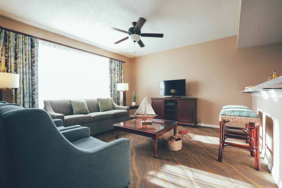 L'un des meilleurs endroits d'Orlando ! À 1,6 KM de Walt Disney World, à quelques pâtés de maisons des points de vente haut de gamme d'Orlando, et extrêmement proche d'autres parcs, comme Universal et SeaWorld. Vous pourrez dîner dans divers restaurants, tous situés à quelques pas de votre séjour, ou vous détendre dans la suite récemment rénovée et profiter de la piscine, du jacuzzi, de la salle de sport, des cabanes extérieures et du terrain de basket-ball. L'endroit parfait pour prendre vos vacances.