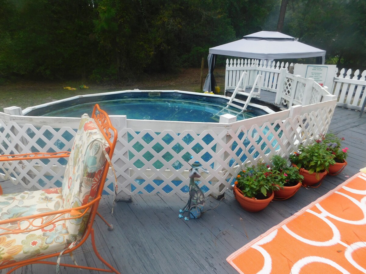 Idéal pour les chasseurs, pêcheurs, "ATV". 4 chambres 2 salles de bain.SLEEPS 10- piscine hors sol est situé à pieds de la forêt nationale d'Ocala, près de 400 000 acres . 600 lacs, rivières et sources . tellement d'espèces en danger..apportez votre appareil photo.... randonnée pédestre, chasse, pêche, équitation et sentiers de VTT se poursuivent pour toujours. Canot est extrêmement populaire.. plongée en apnée dans nos nombreuses sources naturelles célèbres