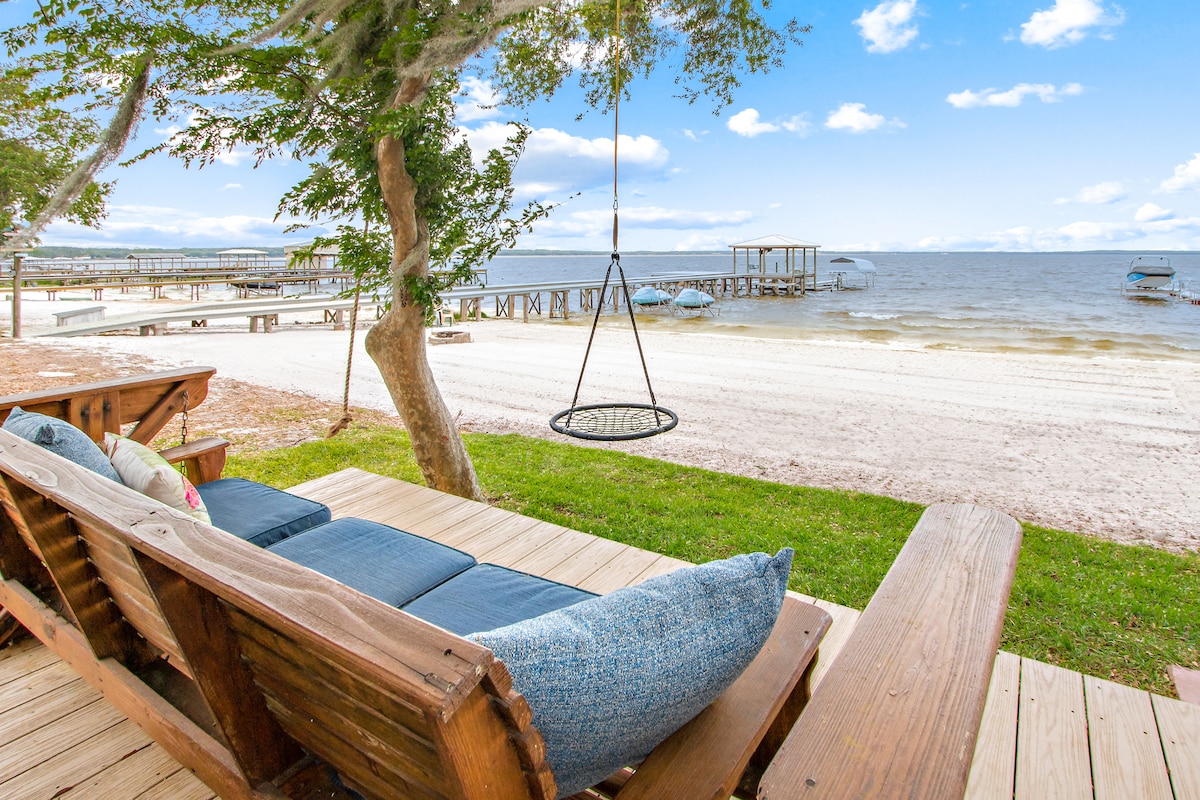 Workers Welcome. PEACE is found here. Escape the business of life at this Central Florida Lake house on 80 acres with green pastures full of grazing cows, fresh air, sandy beachfront and adventure. Unplug & unwind on the floating dock, or picnic in the open field. Multiple paddle boards, john boat, fishing, swimming and nature walks await! Fiber optic fast Wi-Fi 🛜 For event/wedding inquiries at "The Gathered Place" Please contact us elsewhere