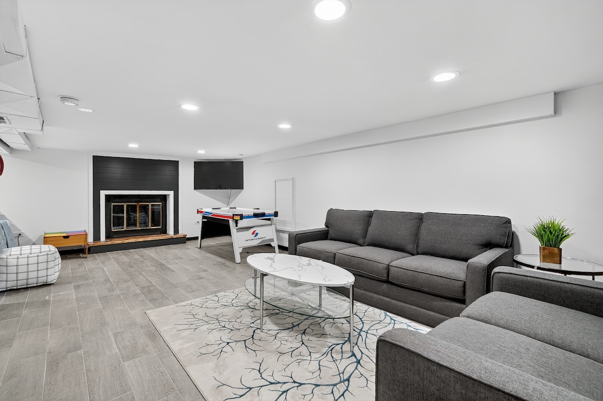 Cette maison est parfaite pour les familles, y compris une grande salle familiale avec baby-foot, des jeux vidéo vintage et un placard rempli de jouets pour vos tout-petits ! La maison est meublée avec des meubles et des finitions de qualité. Nous avons beaucoup travaillé pour penser à tout ce qui fait qu'un séjour en famille est paisible.