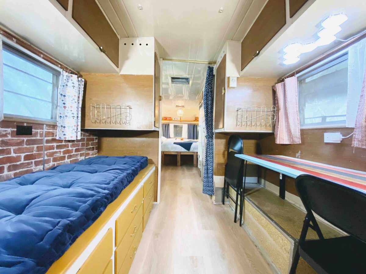 Holmes est un Streamline de 1963 (comme Airstream) qui a reçu une nouvelle vie et qui attend votre séjour ! Fraîchement conçu tout en préservant l'intégrité d'origine qui pourrait être sauvé, ce morceau d'amour en aluminium a reçu beaucoup de soin et d'attention ! Le design éclectique et la palette colorée affichent une touche personnelle, tandis qu'un lit confortable, une cuisine équipée et un coin travail/lecture dédié font de Holmes un camping-car très fonctionnel ! À seulement 3 minutesà pied de la baignade et de la détente sur notre plage de Flathead Lake.