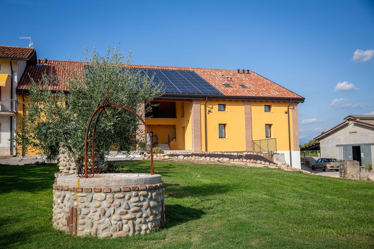 Contemporary Boutique B&B in VALPOLICELLA, in an ancient stone house with two elegant minilofts overlooking the valley, a big GARDEN full of secluded spots surrounded by vineyards with an outdoor WHIRLPOOL to use privately for 2 hours/day (only May-Sept because not heated). ECOLOGICAL geothermal system for heating/cooling and solar panels for hot water. The food needed for breakfast to prepare in the suite is included. 20 mins from Verona, 30 from Lake Garda, 25 from the airport.