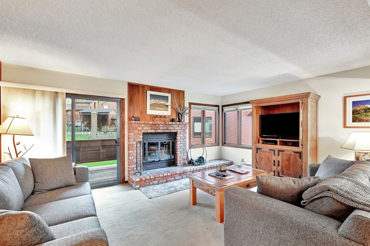 😍Perfect for couples! Sleeps 2-3 🛏 Snuggle up in a Queen size bed ☕️ Cozy living room with queen size pull out couch 📍In Town-Walkable to cafes, shops, restaurants, Vons grocery, movie theater. 🐾 Pet-Friendly: Dog family members welcome 🧑🍳Fully equipped kitchen w/ dishwasher ❤️🔥Two covered hot tubs, sauna, laundry room 🚗 Onsite free parking 🚌 Winter bus routes-On Green Line *5 min drive to Eagle Lodge, *7 minutes to Canyon Lodge 🎿 Ensuite equipment area for gear, ski's, boards