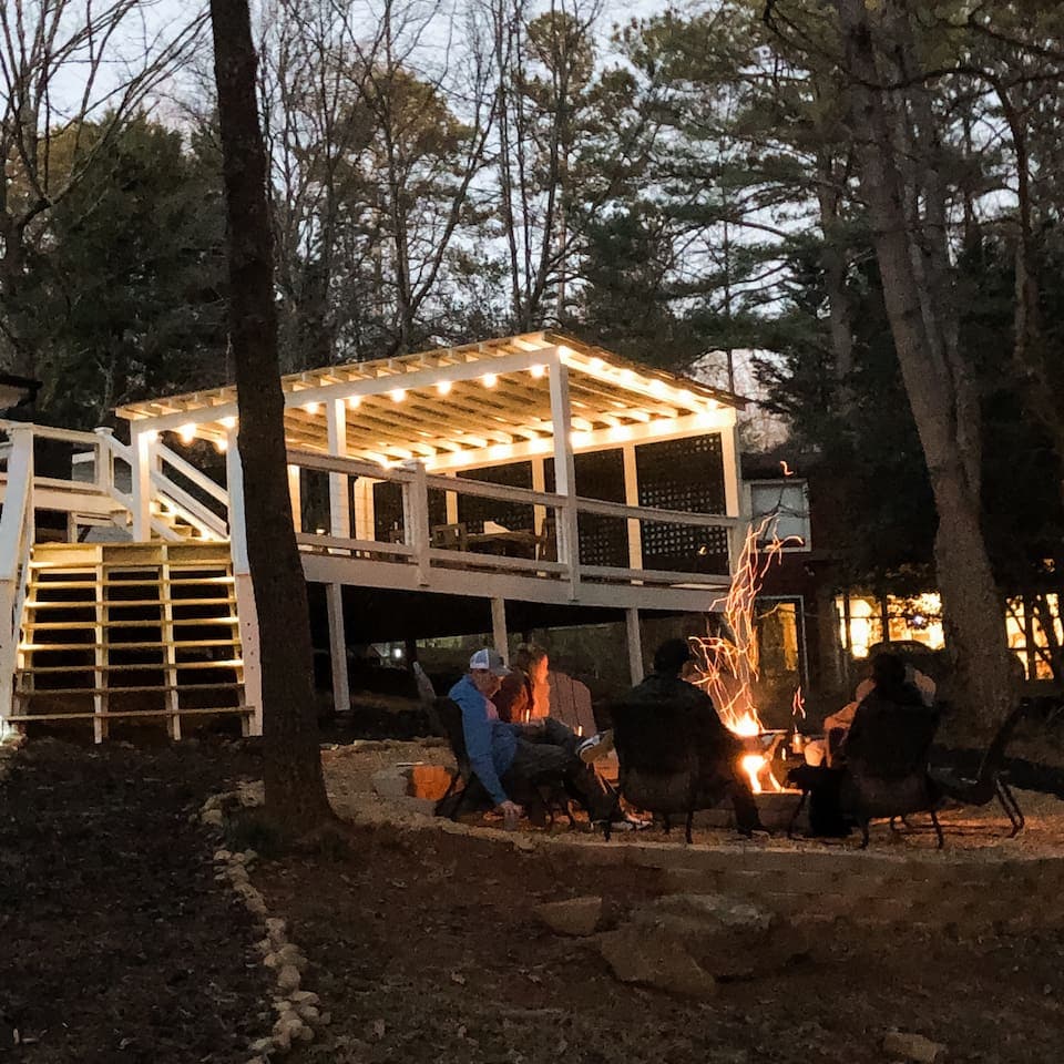 Pensez à une cabane à la rencontre d'une maison au bord d' Venez profiter d'un jacuzzi privé en forêt ou détendez-vous sur le quai festif surplombant un coucher de soleil parfait. Si vous êtes du type extérieur, profitez d'une baignade ou d'une promenade en bateau sur les eaux calmes du lac Lanier du nord ou passez la journée à pêcher. On a un barbecue Big Green Egg, un foyer extérieur et plein de jouets pour les enfants. Cette maison de luxe immaculée de 3 chambres et 2,5 salles de bain dispose de finitions de luxe et est entièrement équipée. C'est une vraie résidence secondaire, pas une location Airbnb vide.