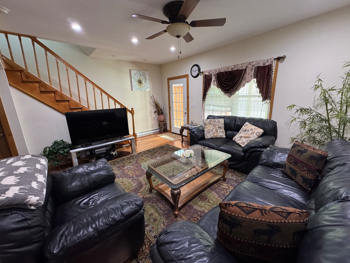 Il s'agit d'un charmant appartement de plain-pied d'une chambre avec entrée séparée dans une maison privée qui est très confortable et spacieuse pour 2 personnes. Un lit pour une personne est également disponible, idéal pour les petites familles. L'appartement comprend une cuisine complète, une salle de bain avec douche debout et un salon avec un poêle à bois. Il y a assez de places de stationnement pour 2 véhicules. Comme il s'agit d'un appartement au niveau inférieur, vous entendrez des bruits de pas.