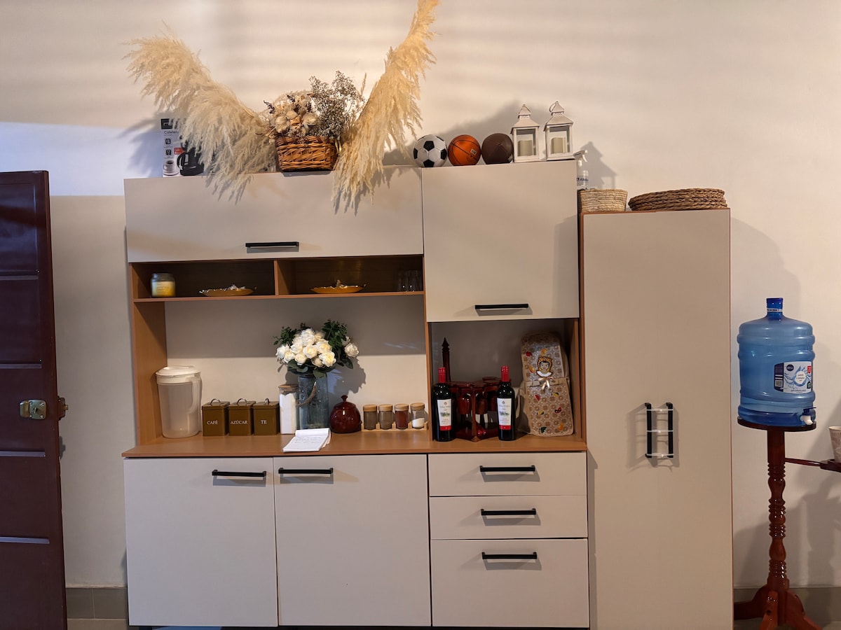 Profitez et détendez-vous dans un appartement confortable avec terrasse privée à Santa Victoria, zone privilégiée, calme et centrale, pleine d'espaces verts, proche de l'aéroport, des magasins, des pharmacies, des minimarkets et des meilleures attractions touristiques de la ville, la terrasse est parfaite pour déguster un verre de vin au coucher du soleil ou un petit déjeuner en plein air. Il dispose d'une chambre, d'un salon, d'un barbecue électrique, d'une chambre avec lit double, d'une cuisine entièrement équipée, d'une salle de bain avec eau chaude 24 h/24 et 7 j/7