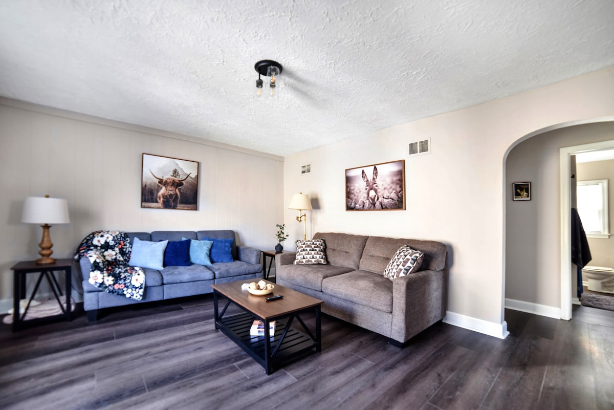 Escape to a tranquil retreat in Logan, ideally located in the Heart of Hocking Hills! This newly built 1500 sq ft home features 3 bedrooms, 2 bathrooms, and a half-basement game room. Perfect for families or couples, it comfortably accommodates 6 guests. Designed for comfort and quality, it's just minutes from zip lining, caves, and canoeing! Whether for a vacation or weekend getaway, Hideaway on Elm is the ideal spot for your escape. Book now to enjoy the ultimate retreat in Hocking Hills!