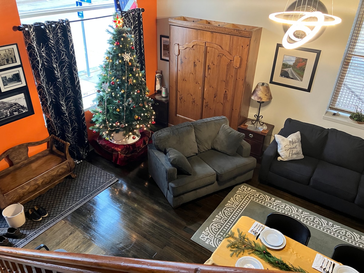 Tout votre groupe appréciera l'accès facile à tout ce que Lansing a à offrir à partir de ce loft au centre de tout. 4 bars, plusieurs restaurants, une épicerie et Kwik Trip, tous à moins de 2 pâtés de maisons. Admirez le Mississippi depuis la terrasse tout en grillant, ou marchez jusqu'à l'eau. Explorez la région sans dérive, observez le changement des feuilles, planifiez des escapades de pêche ou de chasse, des réunions avec des proches, des enterrements de vie de jeune fille et plus encore ! Ou, évadez-vous de tout pour un week-end dans un loft de 1 800 pieds !