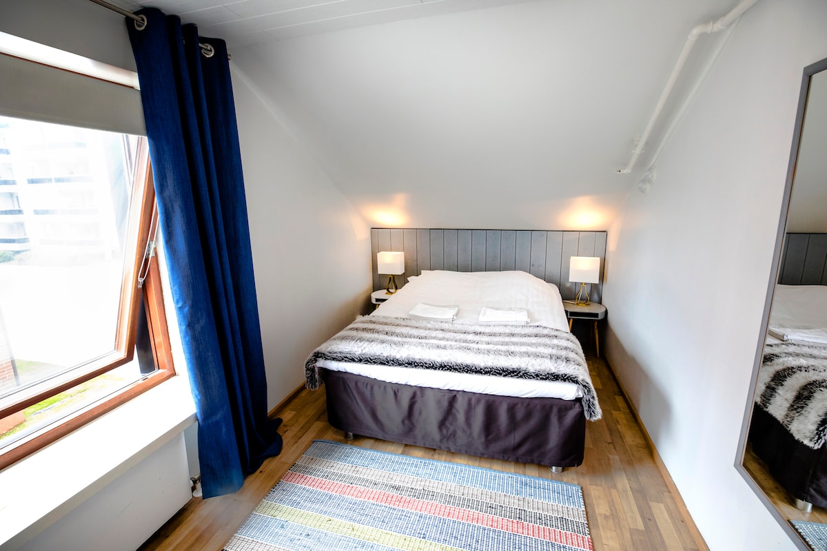 Une chambre dans un hôtel situé dans le centre de Kemi près de la rive. L'hôtel dispose d'une terrasse spacieuse, de saunas à usage gratuit, d'une cuisine spacieuse et même d'une table de billard. Si vous n'avez pas le temps d'aller au magasin d'à côté, vous pouvez également utiliser la machine à grignoter interne. Wi-Fi gratuit dans toutes les pièces. Chambre double privée avec salle de bains commune. Les salles de bains sont situées à proximité immédiate de la chambre. Cette chambre a son propre réfrigérateur.
