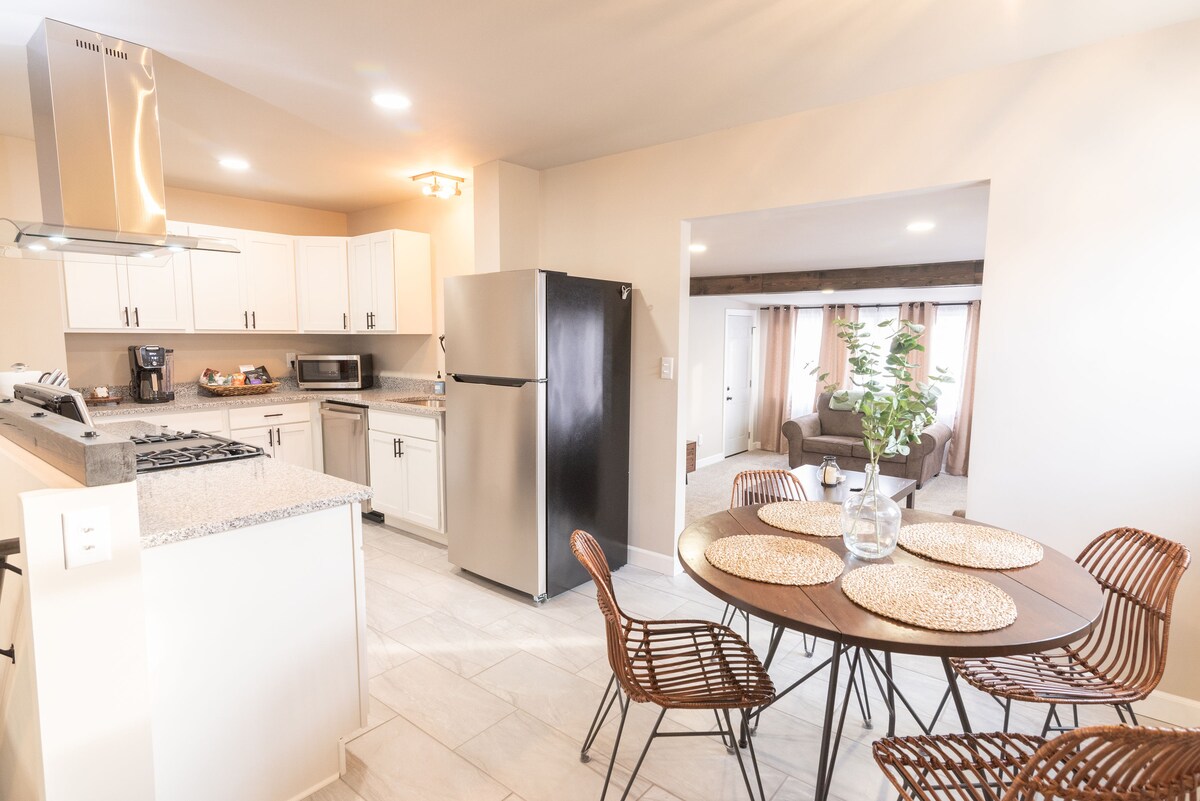 Bienvenue à The Bolka Dot House ! Cette maison familiale a été récemment rénovée avec un intérieur design, de beaux meubles, trois chambres (king/queen/full), deux salons, une cuisine entièrement équipée, une salle de bain complète et une demi-salle de bain et une pièce trois saisons ! La maison est située à moins de 10 minutes de la plage de Washington Park, du Blue Chip Casino and Spa, des magasins Lighthouse Place Premium Outlets, du vignoble Shady Creek Winery, du quartier des arts Uptown Arts District, de divers restaurants locaux et de chaînes de restaurants, de cafés et de brasseries.