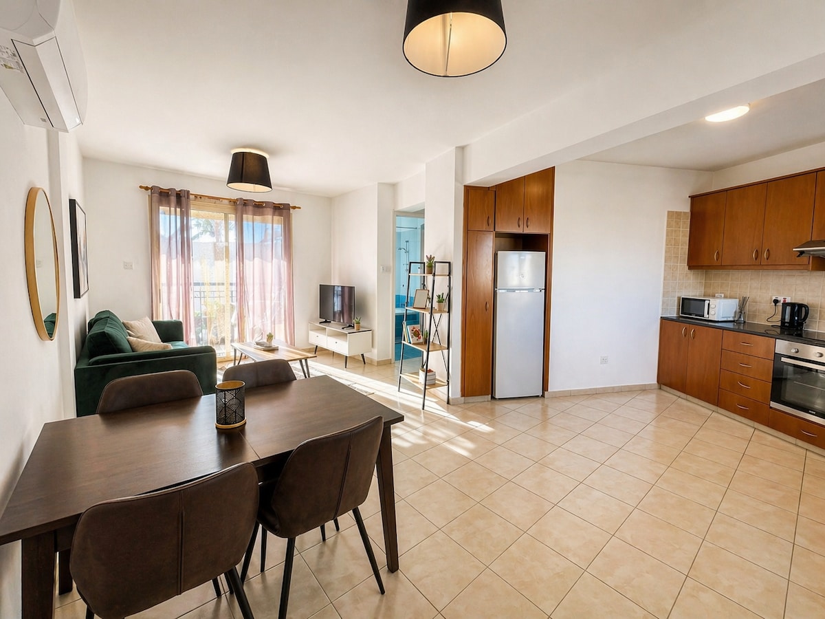 Vous recherchez un appartement moderne, propre et confortable ? C'est l'appartement parfait pour vous, situé en plein cœur de Paphos. À une minute à pied du port, des restaurants, des bars, des souvenirs, des cafés, et plus encore. Kings Avenue Mall est à seulement 5 minutes à pied. La gare routière est en face de l'appartement. Cuisine,A/C, W W GRATUIT et TV inclus.