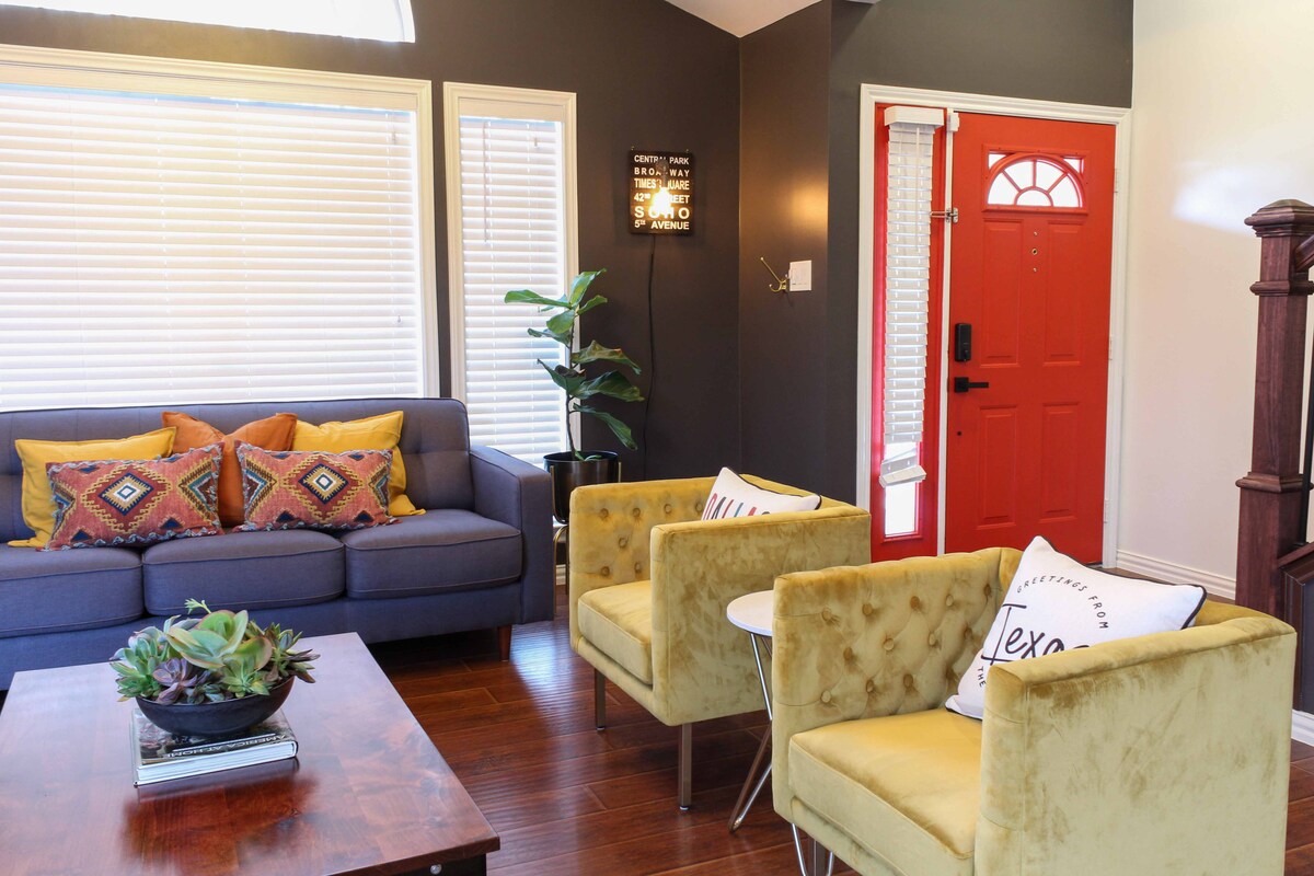 Bienvenue dans notre TOUTE NOUVELLE maison de ville moderne et spacieuse. Notre maison spacieuse de 4 étages est parfaitement conçue pour que les familles et les groupes se détendent et profitent de tout ce qu'elle a à offrir. Rejoignez-nous et détendez-vous dans le luxe ! EMPLACEMENT PRIVILÉGIÉ - Cette belle maison se trouve dans un merveilleux quartier nouveau et branché à quelques minutes de tout ce que Dallas a à offrir. À 12 minutes de l'aéroport avec un accès rapide et facile aux principales autoroutes. Cuisine entièrement approvisionnée et bar à café. Nouvellement meublée. Confortable. Spacieuse.