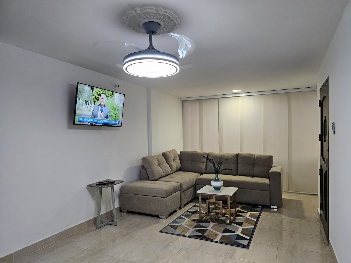 Confortable studio indépendant d'une chambre, avec air conditionné, salle de bain privée, cuisine équipée, salle à manger et terrasse. Il dispose du Wifi, d'une Smart TV, de la télévision par câble, d'un bureau, d'une machine à laver et est entièrement meublé. Situé dans le secteur le plus sûr de la ville, très proche des meilleurs centres commerciaux, restaurants, supermarchés, nouveaux centres d'affaires et lieux de divertissement, avec un magnifique parc à proximité et un accès facile aux transports en commun.