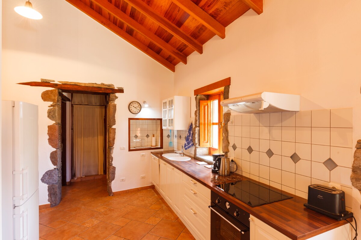 Le poulailler était ici. Mais on ne voit rien de tout ça. Les murs de pierre créent un agréable microclimat et les grandes fenêtres laissent entrer beaucoup de lumière et donnent également sur la pente. Vous pourrez vous détendre sur la terrasse et après une journée riche en événements, la douche à effet de pluie vous attend dans l'oasis de bien-être. En voiture, vous pouvez également changer rapidement la « puce ». 15 minutes de la plage, 25 de Las Palmas et 30 au sud.