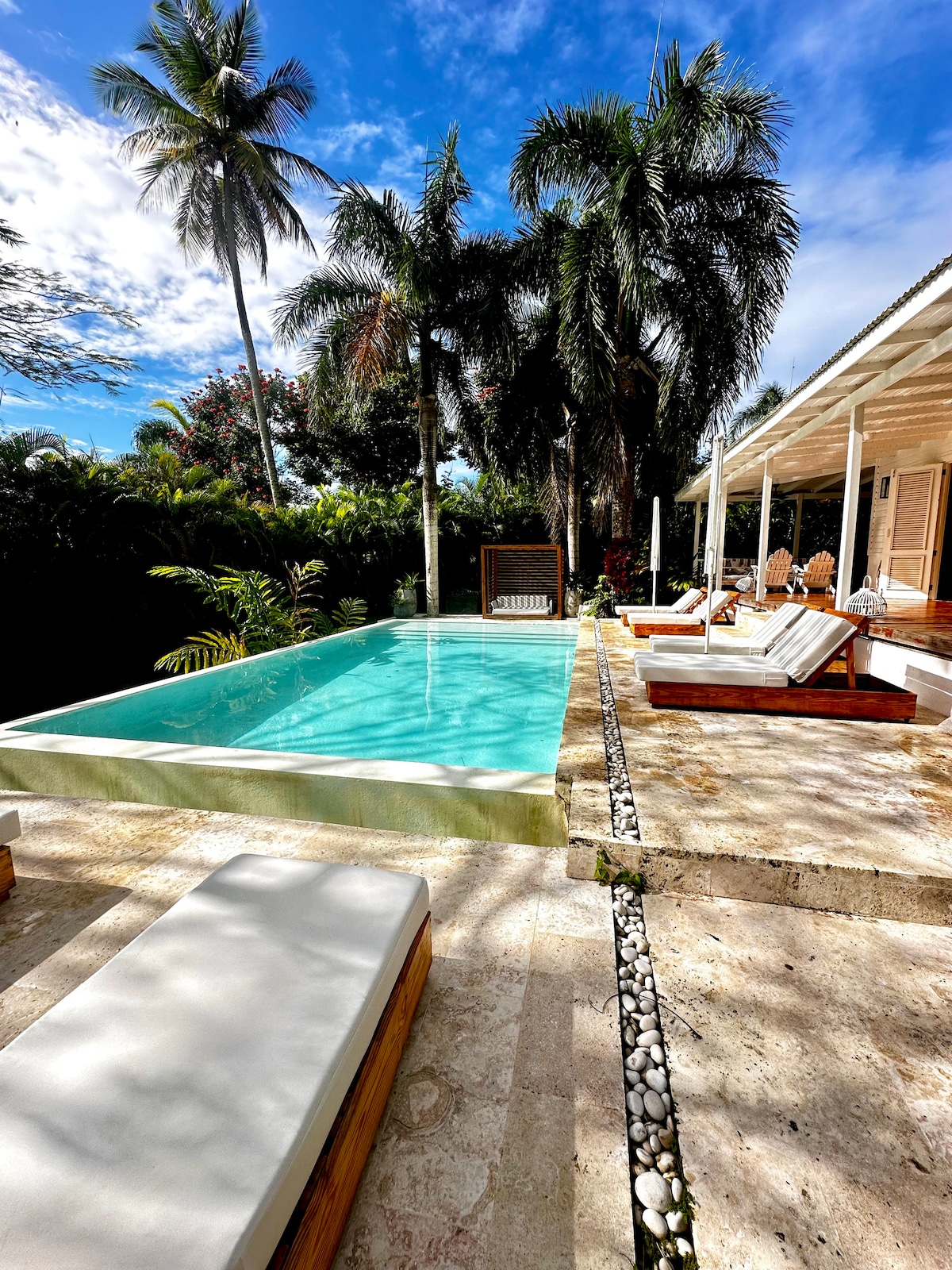 Bienvenue dans votre escapade de luxe à Las Terrenas! Conçu par un décorateur d'intérieur, cet appartement moderne est la retraite tropicale idéale. Ce que vous aimerez dans votre séjour : ☀️ Oasis privée : un jardin luxuriant avec votre propre jacuzzi, lit balinais et espace barbecue. 🏖️ Emplacement privilégié : à seulement 3 minutes en voiture de la magnifique Playa El Portillo. 🏊 Piscine du complexe hôtelier : plongez dans la magnifique piscine du complexe, à quelques pas de là. ✨ Confort élégant : 3 chambres chics et climatisées, parfaites pour un maximum de 7 voyageurs.