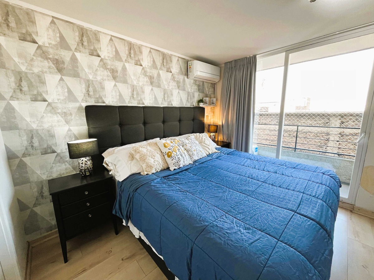 Profitez d'un appartement moderne et confortable d'une chambre et une salle de bain situé à Santa Elvira, Santiago. Idéal pour deux personnes, avec option pour une troisième dans le futon du salon. L'espace est entièrement équipé avec une cuisine complète, le wifi, la télévision et la climatisation froid/chaud pour votre confort maximal. Son excellent emplacement permet d'accéder facilement au métro, aux restaurants, aux supermarchés et aux principales attractions du centre-ville.