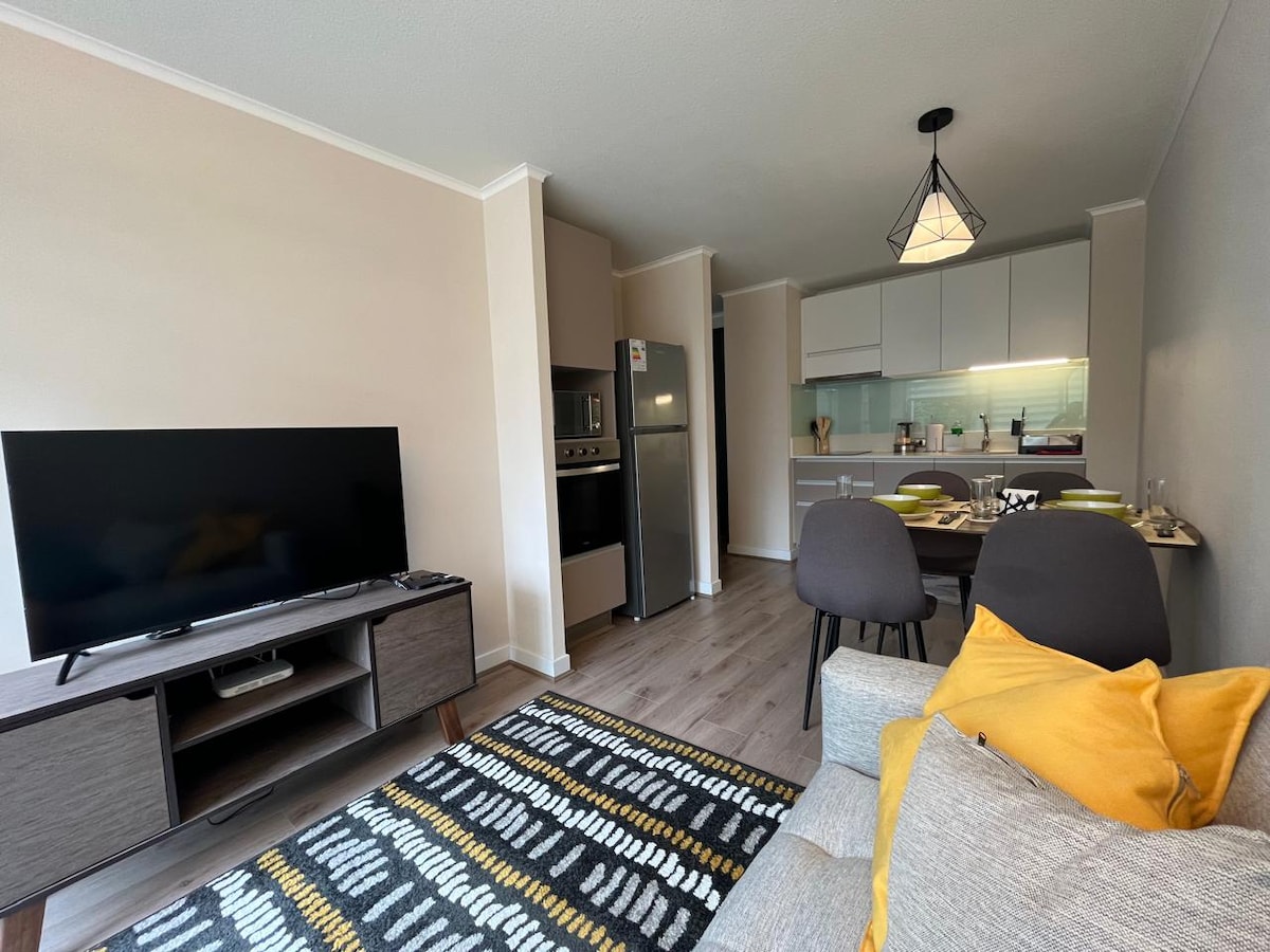 Charmant appartement au coeur de Santiago avec une vue panoramique imprenable sur le centre-ville. Profitez des gratte-ciel éclairés le soir et des paysages urbains la journée. Cet espace cosy bénéficie d'un confort moderne, d'une décoration élégante et de tout le confort nécessaire pour un séjour inoubliable. Depuis le balcon privé, vous pourrez vous régaler avec une vue panoramique allant de la chaîne de montagnes aux points emblématiques de la ville.