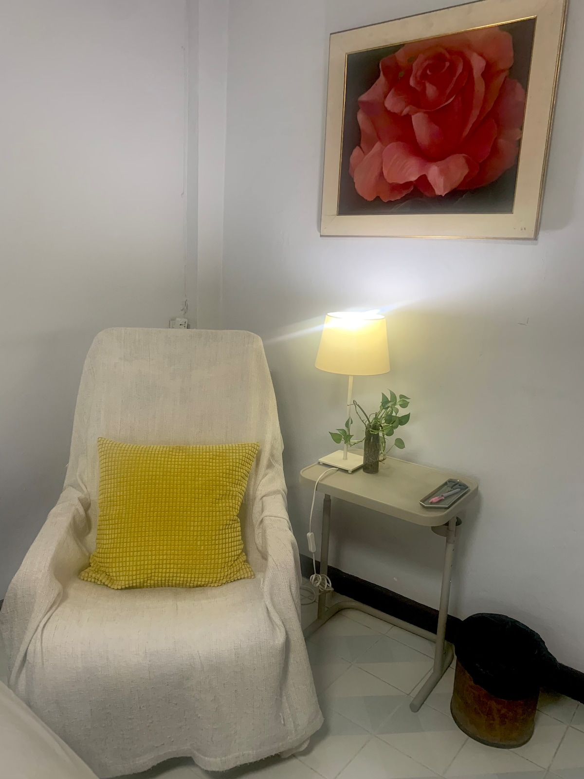 Sérénité dans ma chambre aux hauts plafonds avec salle de bain privée. Parfaitement situé pour une exploration facile de Bangkok, à seulement 5-7 minutes à pied de la station BTS. À seulement 3 stations de BTS de Siam, 2 d'Ari et 4 du marché JJ. Un 7-11 est au coin de la rue, entouré de restaurants locaux et de lieux de massage thaïlandais.