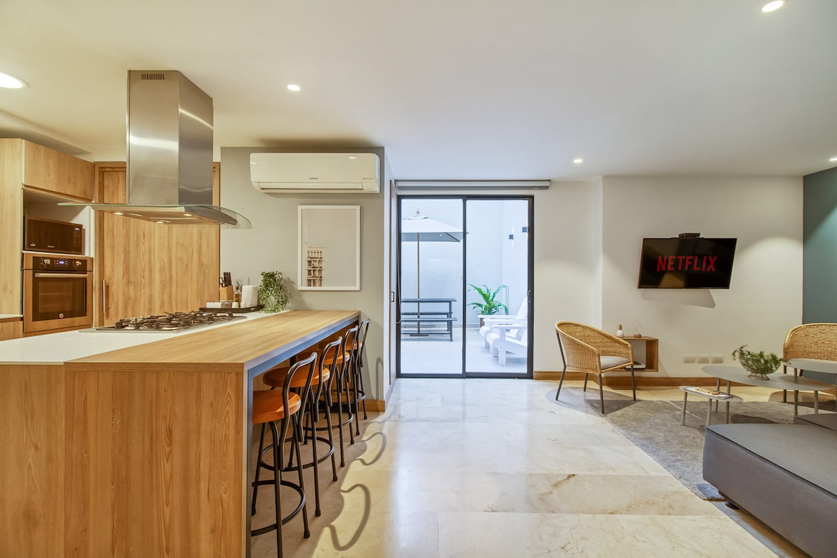 |CG| Boutique 2BR retraite avec AC à Laureles, MDE