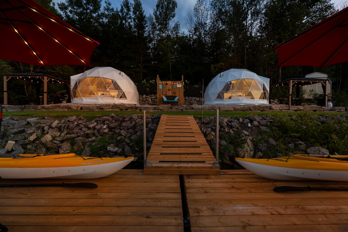 Évadez-vous dans la nature au Lotus Glamping à Gracefield, au Québec. Séjournez dans un dôme de luxe sur les rives du lac des Îles avec un jacuzzi privé, une cuisine complète, une salle de bain, un barbecue, un foyer et un accès au lac pour le kayak et la baignade. 4 personnes avec un grand lit et un loft. Parfait pour les couples, les familles ou les escapades paisibles. À seulement 12 minutes des boutiques et des restaurants de Gracefield. Profitez du confort, de l'aventure et de la nature en un seul séjour inoubliable. Réservez votre retraite dans un dôme dès aujourd'hui!