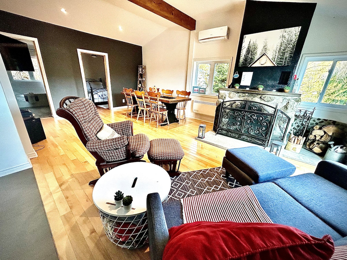 Chalet 4 saisons 2020, caché dans les collines de Chertsey, Québec. À 1 heure de Montréal, nous offrons tranquillité et espace pour que vous, votre famille et vos amis vous réunissiez et profitiez de la beauté de la nature toute l'année. En hiver, appréciez la proximité de la station de ski, Arbraska, du Spa La Source, des sentiers de raquette et de ski de fond à proximité. En été, accès partagé au lac, vélo, randonnée, parc aquatique & Zoo à proximité. Profitez du spa toute l'année.