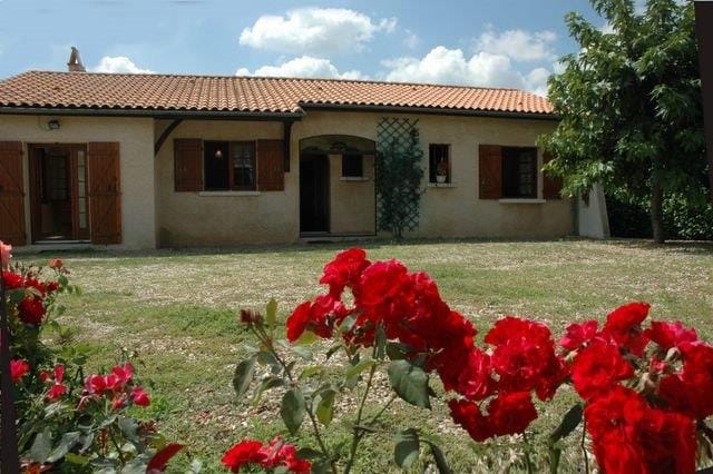 Jolie villa individuelle pouvant accueillir jusqu’à 6 personnes, classée 3 étoiles. Une vue imprenable sur le Vignoble et la vallée. La maison a été entièrement construite de nos mains. Nos valeurs, chères à nos yeux, le respect de l'environnement par l'emploi du seconde main, c'est pourquoi l’ensemble de l’ameublement a été chiné et relooké. Logement entièrement climatisé. Petite piscine hors-sol aménagée pour vous rafraîchir l'été. Périgord Pourpre, région très touristique.