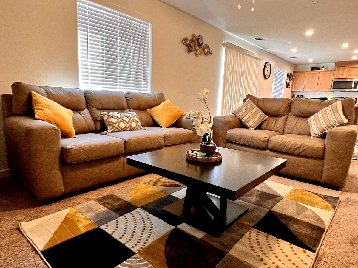 Bienvenue dans notre confortable maison de 3 chambres et 2,5 salles de bain à Merced, en Californie! Cette maison spacieuse est parfaite pour les familles, les groupes d'amis ou toute personne à la recherche d'un logement confortable et pratique. Le logement est adapté au télétravail, et chaque chambre a son propre bureau et son propre espace. De nombreux jeux et activités ont été ajoutés pour rendre votre temps avec votre famille et vos amis plus agréable! La maison est proche de l'hôpital Dignity Health et de l'UC Merced.