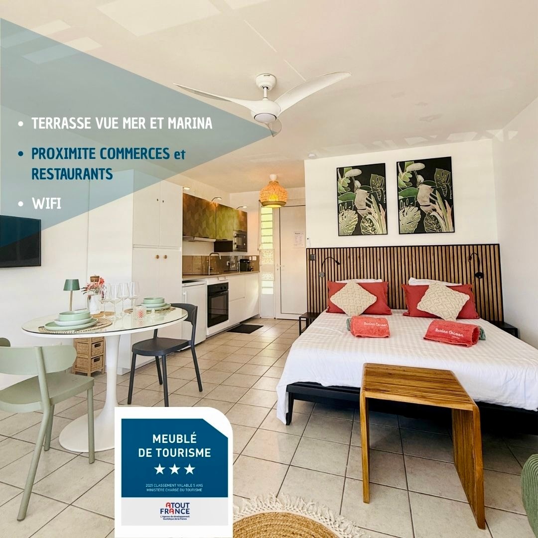 🌴 Appartement cosy avec vue sur la Marina 🌴 Posez vos valises et profitez d’un vrai moment de douceur dans ce T2 calme et lumineux, situé au cœur du Marin, juste en face de la Marina. Sa terrasse offre une vue agréable, idéale pour prendre le petit-déjeuner ou se détendre en fin de journée. Décoré avec soin et pensé pour votre confort, l’appartement vous accueille dans une ambiance chaleureuse, parfaite pour un séjour à deux ou en famille.