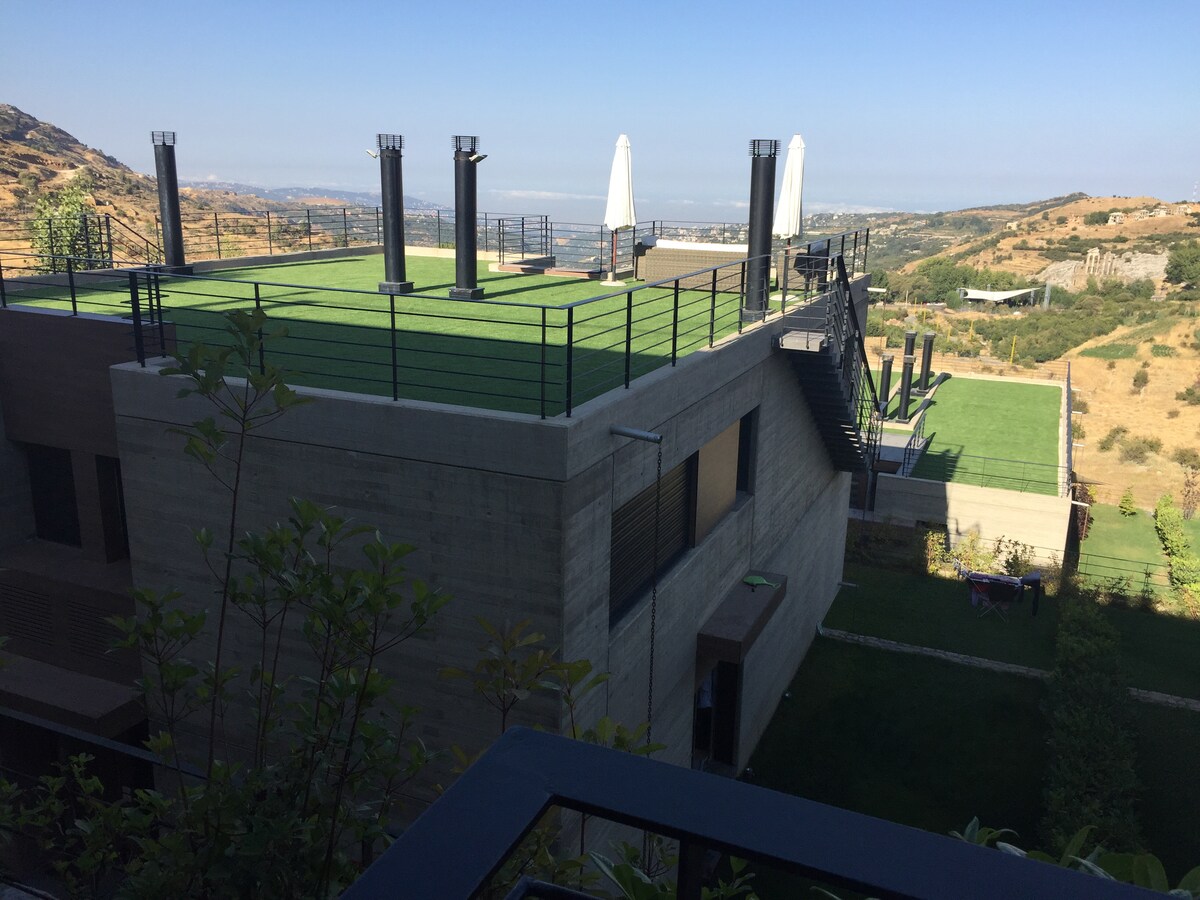 Toutes les réservations comprennent le concierge, l'électricité 24h/24, la planification du voyage et le stationnement gratuit. ★ « Super endroit, comme annoncé. Hautement recommandé. » 100 m² en simplex avec terrasse et vue imprenable. ☞ Pas de règles pour le départ Électricité et chauffage☞ 24 h/24, 7 j/7 ☞ Lit bébé et chaise haute gratuits sur demande À ☞ 5 minutes en voiture de la station de ski de Mzaar Télévision ☞ HD avec Netflix ☞ Wi-Fi rapide ☞ Cheminée