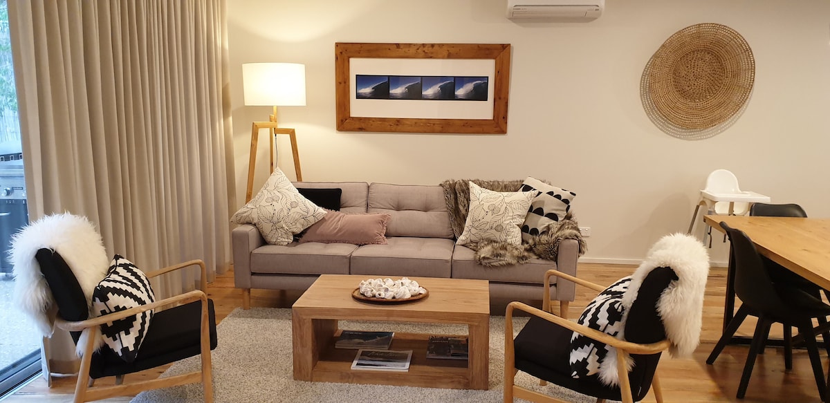 Redgate Beach Escape comprend quatre chalets contemporains de deux chambres, chacun avec vue imprenable sur la côte. Un spacieux espace de vie et de cuisine moderne et ouvert sépare deux chambres King et Queen généreuses et privées (avec des lits très confortables).<p> Design simple et fonctionnel, mais universellement confortable et accueillant avec un mobilier décontracté d'inspiration balinaise. Chaque chalet est équipé de tous les équipements modernes pour le confort et la commodité. La cuisine et la salle à manger bien équipées satisferont les gourmets les plus exigeants.