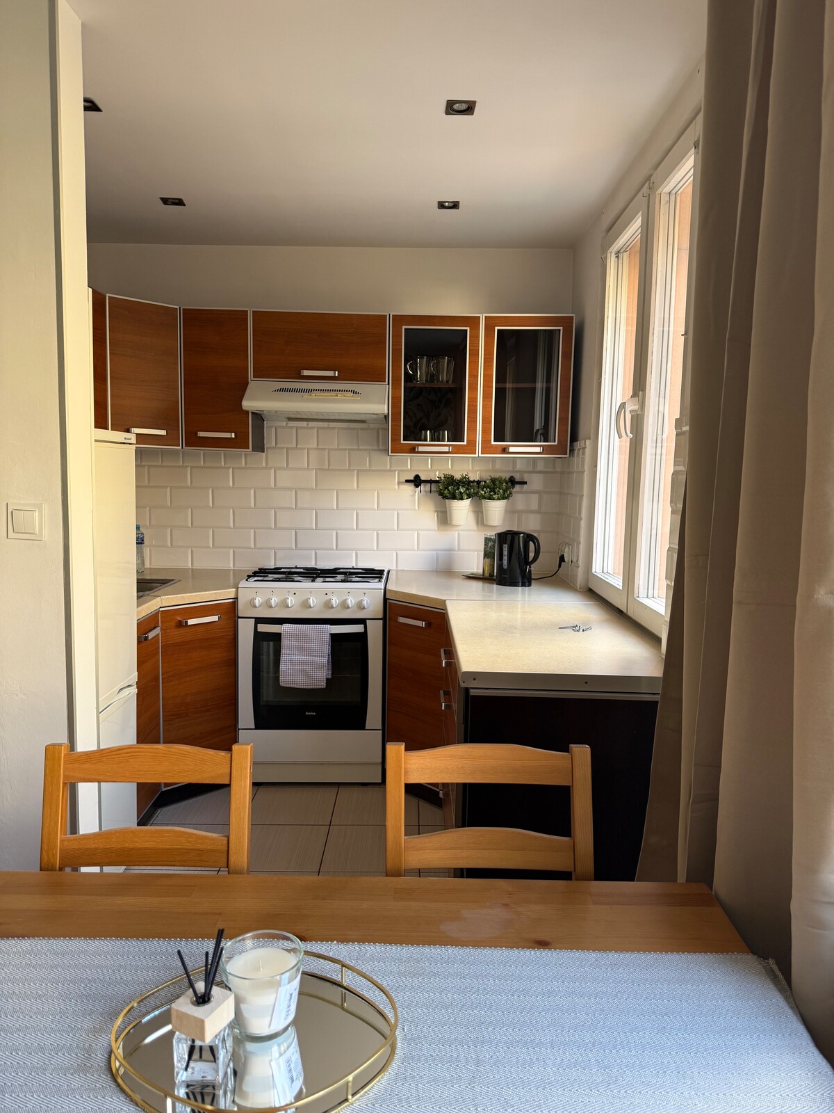 Appartement spacieux (53 m2) avec deux chambres situées à 2 km du centre-ville. Une cuisine équipée d'un réfrigérateur, d'un lave-vaisselle, d'un four, d'une plaque à induction, d'une hotte, d'une bouilloire électrique, d'une cafetière et d'appareils de cuisine (casseroles et poêles, etc.) L'appartement dispose également de: lave-linge, sèche-linge, sèche-cheveux, fer à repasser, planche à repasser. L'aéroport de Wrocław est accessible en moins d'une heure, tandis que le LSSE et la route A4 sont accessibles en 5 minutes.