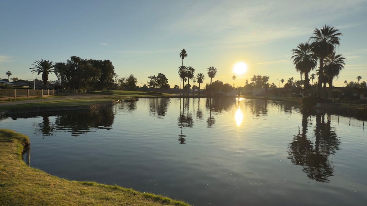 🌵 Prickly Pear Hideout : votre confortable escapade dans le désert ! Ce studio privé se trouve sur le parcours de golf de Golden Hills et dispose d'un parc et d'un étang à canard à proximité. ⛳️🏌️ Parfait pour les golfeurs, les couples et les voyageurs en solo à la recherche d'un séjour reposant. Calme, élégant et à moins de 5 minutes des restaurants et du centre commercial Superstition Springs. 🛍️ Environ 20 minutes de l'aéroport Mesa Gateway et du centre-ville de Mesa, et 40 minutes de l'aéroport de Phoenix Sky Harbor. ✈️ Réservez dès maintenant pour une escapade parfaite !🌵🏜️