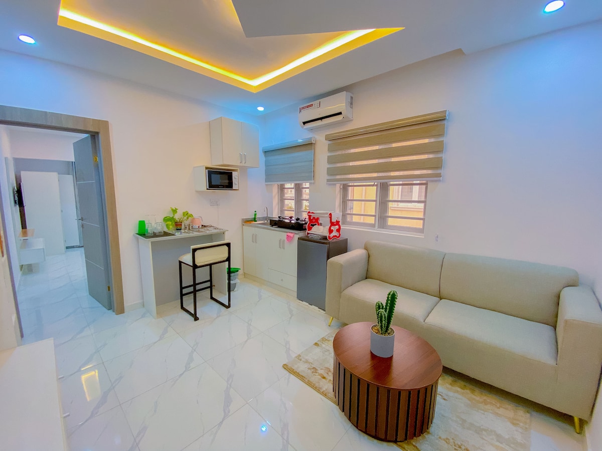 Venez découvrir un mélange de confort et de style dans ces tout nouveaux appartements de courte durée parfaits pour les séjours courts et prolongés. Nos appartements sont spacieux, contemporains, meublés avec goût pour offrir le plus de confort et de détente. Que vous soyez en voyage d'affaires, de loisirs ou en vacances en famille, cet appartement offre le mélange parfait de luxe, de sécurité et de commodité au cœur de Lekki phase 1. L'emplacement est serein et situé au centre de toutes les principales attractions