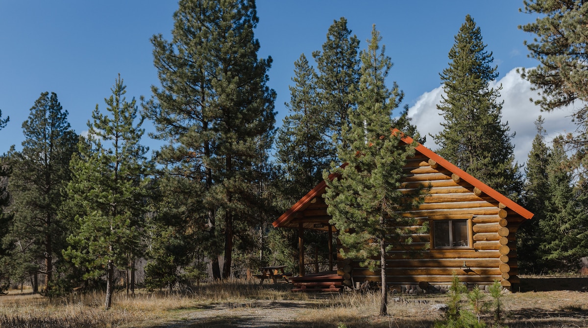 Grande cabane propre et confortable dans un cadre privé. À quelques minutes en voiture de la station de ski Lost Trail et de la célèbre Middle Fork de la rivière Salmon River Of No Return. Venez vous détendre dans les sources thermales Goldbug à proximité. Salle de bain privée dédiée aux invités dans un bâtiment séparé qui est à quelques pas, toilette portable au chalet. Les possibilités de loisirs sont infinies, venez séjourner avec nous dans les Ponderosas, Mountain Views, pêche, beaucoup de faune. Emplacement pratique à côté de l'autoroute 93 N. Peut accueillir 4-6 personnes. Chauffage/AC, WIFI, frais pour les animaux!