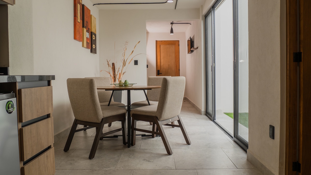 Vivez une expérience agréable avec toute la famille dans ce logement élégant. Grand espace avec 2 chambres, 2 salles de bains et 1 grand balcon. Il est situé dans un condo dans le meilleur quartier commerçant de Leon, à quelques mètres des restaurants traditionnels, des cafés de marques internationales et du meilleur centre commercial de Leon.