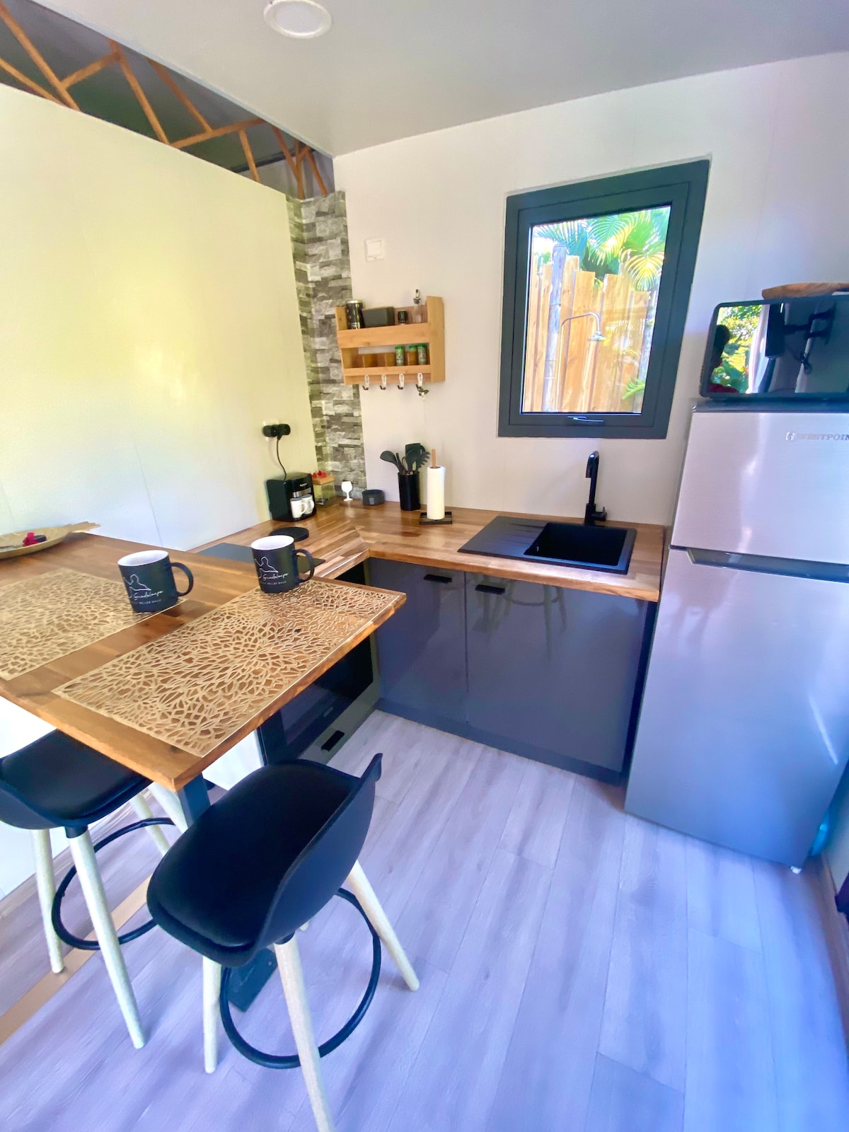 Votre Intimité est Notre Priorité ✨ Escapade Unique, Romantique et Intimiste alliant Nature et Modernité. Au cœur d’un Jardin Tropical dans un quartier retiré, notre Tiny House est à l’abris des regards, sans Vis à vis avec sa Piscine au Sel Chauffée et son option Jacuzzi. Vous aurez un espace Sécurisé et Fermé avec la place pour 2 véhicules et un coin détente autour de la piscine que cela soit dans le mini salon ou sur la grande terrasse. Vous avez également une Cuisine équipée.