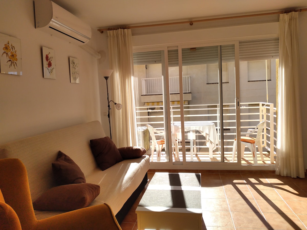 Apartament JOIA BLAVA ¿Quieres desconectar y relajarte? ¡Este es tu apartamento! Una verdadera joya azul situada enfrente el mar en un pueblo pesquero único y tranquilo. El apartamento se encuentra situado al centro del pueblo marítimo de Les Cases de Alcanar. Consta de dos habitaciones con dos baños, un salón comedor y una terraza. Cuenta con ascensor. Para menos de 6 días no incluye toallas ni sabanas (cama grande si).