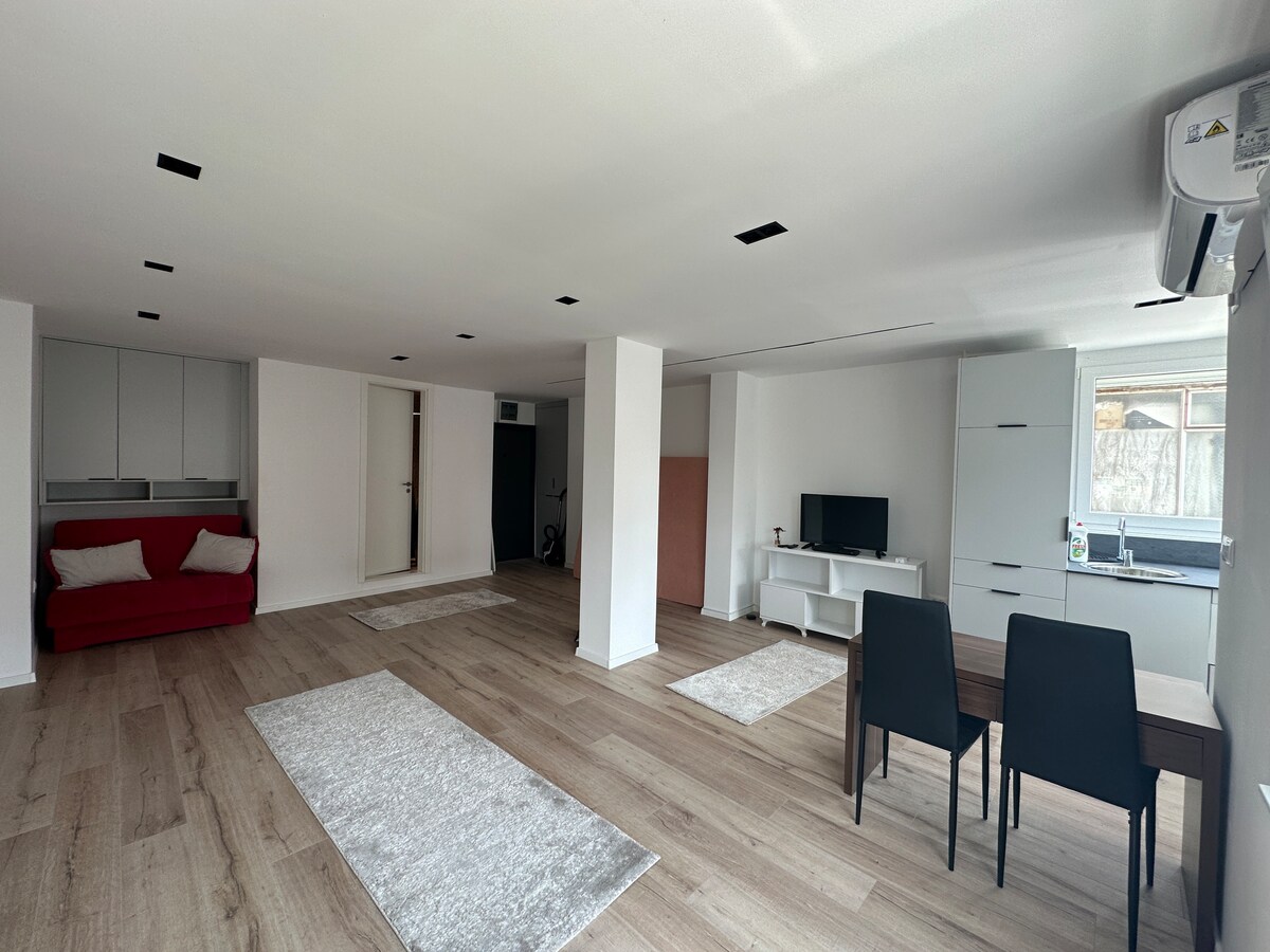 Appartement d'une chambre fait pour deux. Niché à l'intérieur du petit bazar de Gjakova, à quelques pas des boutiques d'artisanat et des cafés. « Modern Bazaar Apartment » allie charme et confort urbain : Divan-lit, cuisine complète avec machine à expresso, télévision intelligente de 55 po, fibre 150 Mo/s, climatisation, laveuse dans l'unité et entrée sécurisée. Promenez-vous jusqu'à la tour de l'horloge, puis retirez-vous dans un havre de paix climatisé. Stationnement gratuit dans la rue généralement disponible.