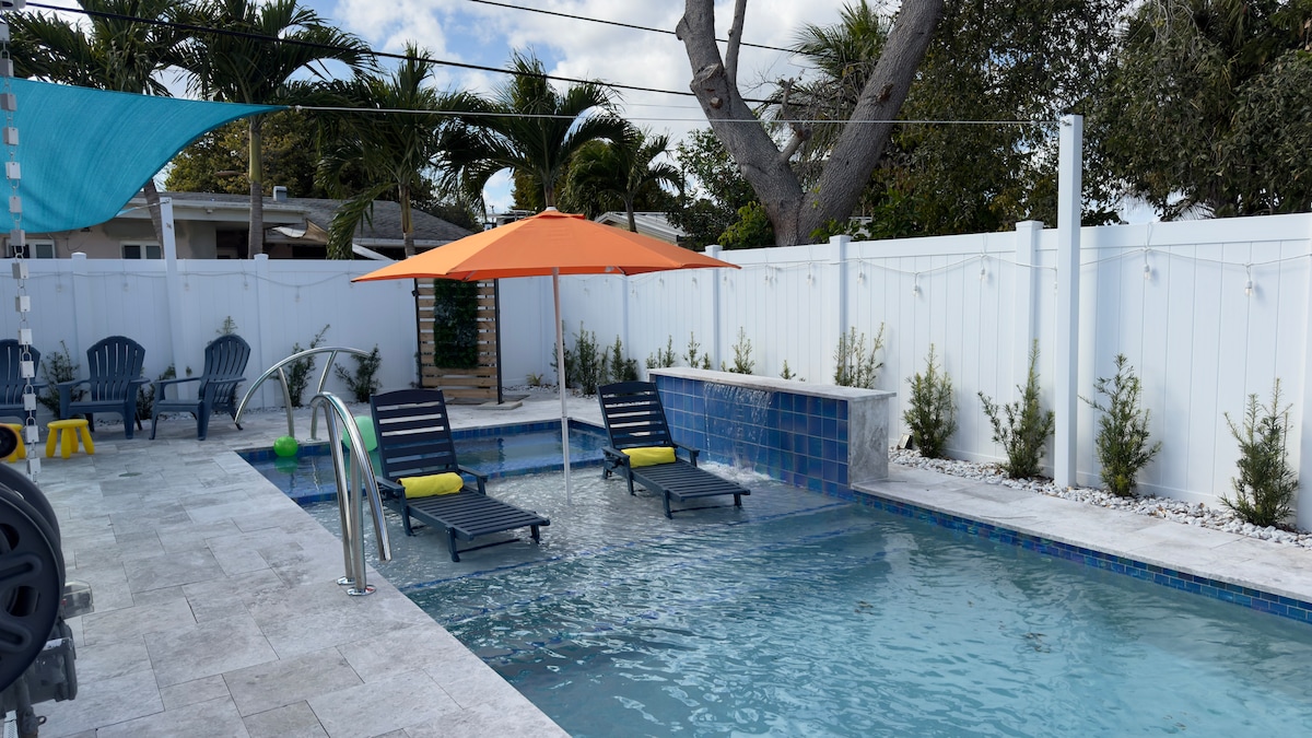 À DEUX PÂTÉS DE MAISONS DE LA PLAGE PUBLIQUE ! Maison de vacances de rêve moderne et côtière entièrement rénovée au cœur de Deerfield Beach ! Beaucoup d'espace avec une grande cour arrière privée/clôturée, un grand espace vert et un barbecue, un lave-linge séchant : tout pour votre usage personnel et exclusif. Marchez deux pâtés de maisons jusqu'à la plage publique, la jetée, la promenade, la vie nocturne et les restaurants incroyables. Surfez, naviguez, pêchez, nagez dans l'océan. Deux chambres luxueuses et propres et deux salles de bains, + canapé-lit Queen Size gigogne. Coin repas lumineux dans la véranda. Salle de jeux de ping-pong en bonus !