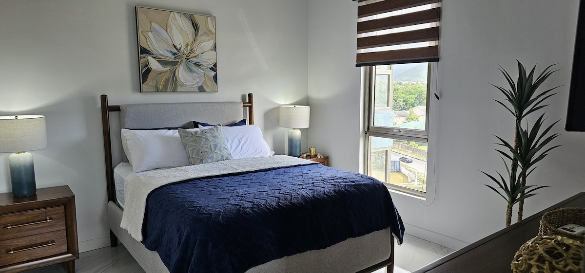 Profitez d'une expérience élégante dans cet appartement situé au centre de Liguanea, un quartier important et très recherché. Le quartier dispose de divers restaurants, centres commerciaux, divertissements, y compris une vie nocturne animée, gymnases, supermarchés, pharmacies et autres commodités essentielles. L'appartement est situé dans une communauté fermée bien entretenue avec des espaces de jardin luxuriants, une buanderie dédiée équipée d'un lave-linge/sèche-linge, un parking gratuit, une connexion Wi-Fi, le câble, la climatisation et l'accès aux services de streaming.