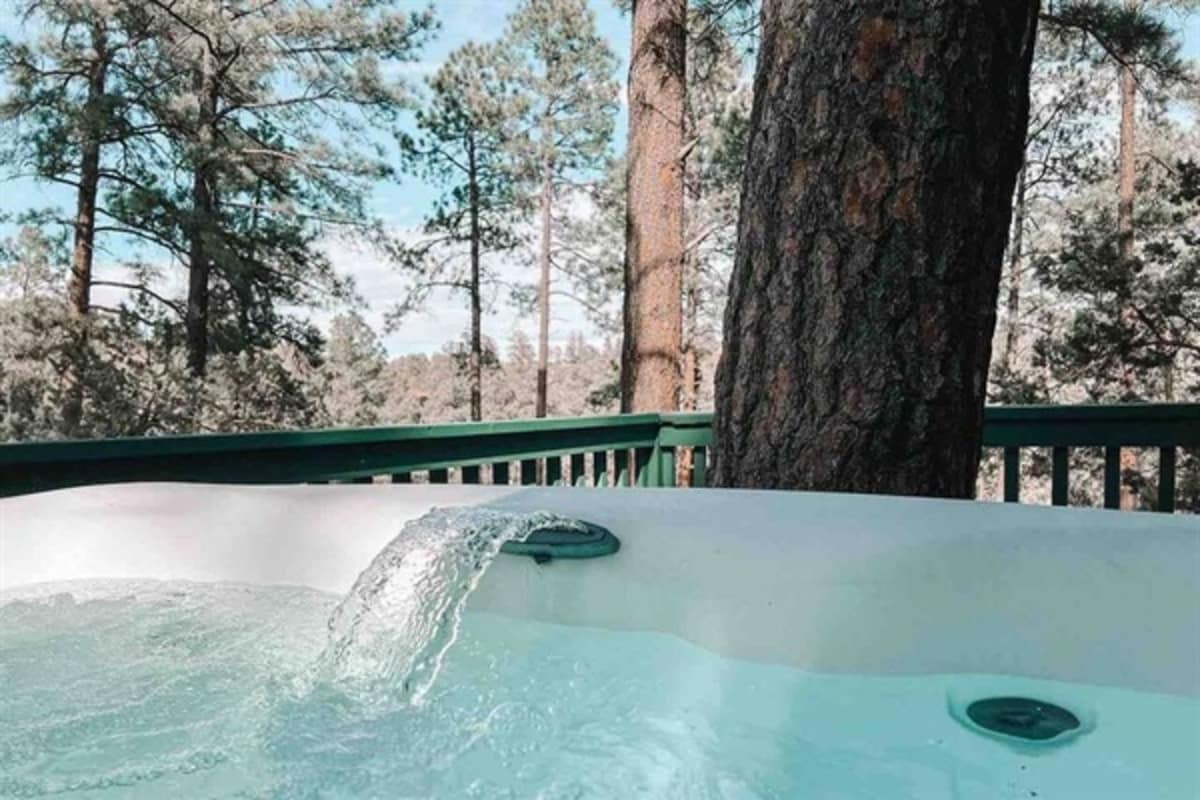 Ce chalet confortable est perché tranquillement parmi les grands pins et est parfait pour accueillir jusqu'à 4 personnes. Doté d'une chambre, d'une salle de bain, d'un salon, d'un coin repas, d'une cuisine complète, d'un bureau, d'un nouveau jacuzzi et d'une terrasse, il est idéal pour ceux qui veulent se détendre et profiter de ce que Ruidoso a à offrir. Il est situé dans un quartier calme qui est à 10 minutes à pied en bas de la colline de Midtown, le centre du village pour les magasins et les restaurants. Le chalet est à 37 min en voiture de Ski Apache, à 10 min en voiture des casinos.