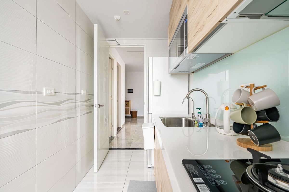 Espace entièrement repensé avec une rue verdoyante merveilleusement calme. Spacieux, 2 chambres et 2 salles de bain, récemment rénové avec un style moderne. Emplacement parfait dans la ville de New Taipei : quartier résidentiel calme, à 3 minutes du métro Xiaobitan, à 5 minutes du supermarché, à 15 minutes en voiture du centre-ville de Taipei, à 5 minutes des stations de bus et du magasin 7-11.