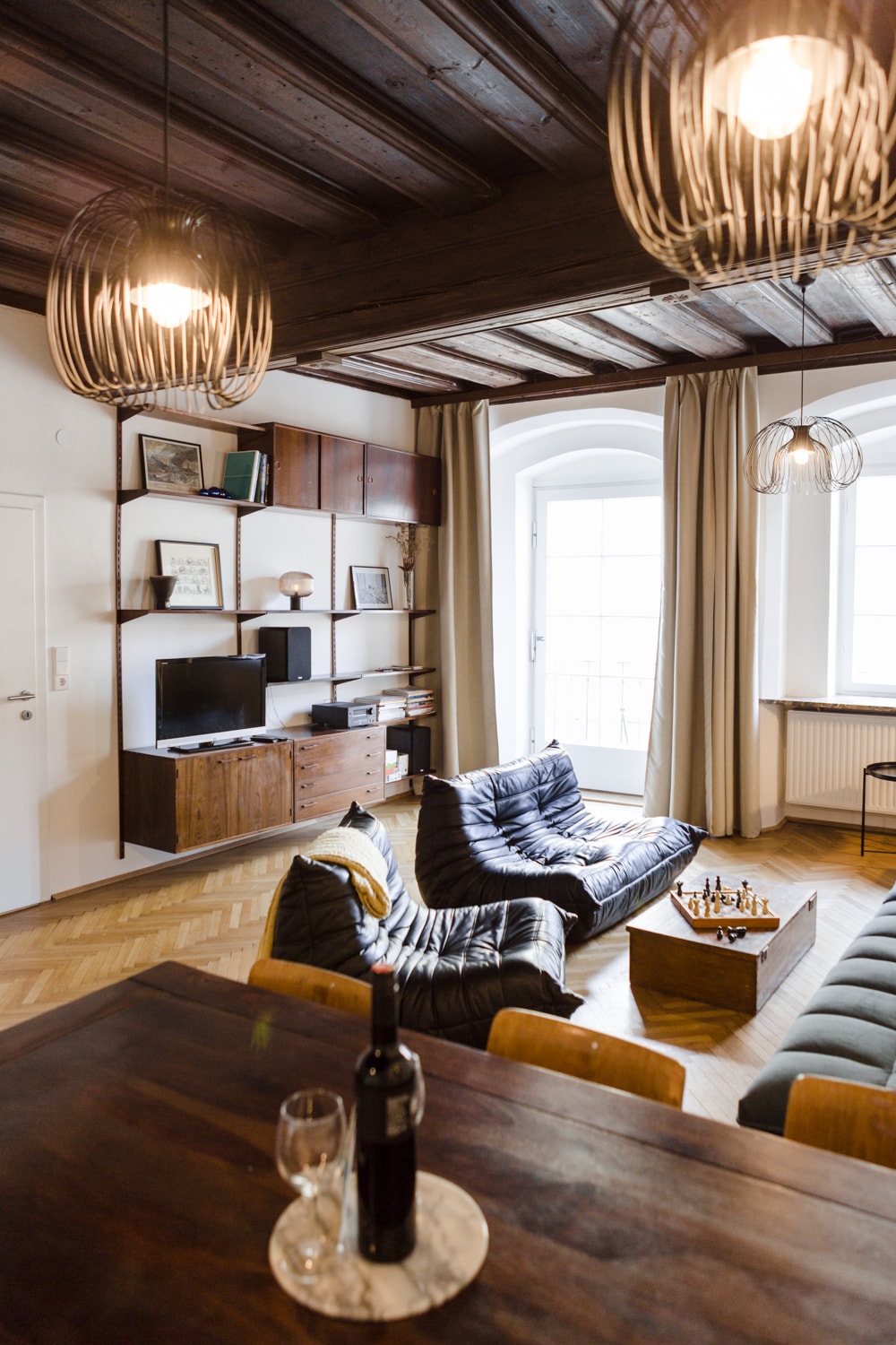 La maison est située à seulement 150 m de la route principale. L'appartement penthouse a été rénové avec amour par nos soins et transformé en votre jungle urbaine personnelle au moyen de nombreuses plantes vertes. L'appartement est situé au 5ème étage, accessible par ascenseur et s'étend sur tout le grenier (85 m²) + 2 balcons séparés (en partie couverts). Profitez de la vue imprenable depuis les balcons spacieux sans voisins adjacents ni vue gênante.