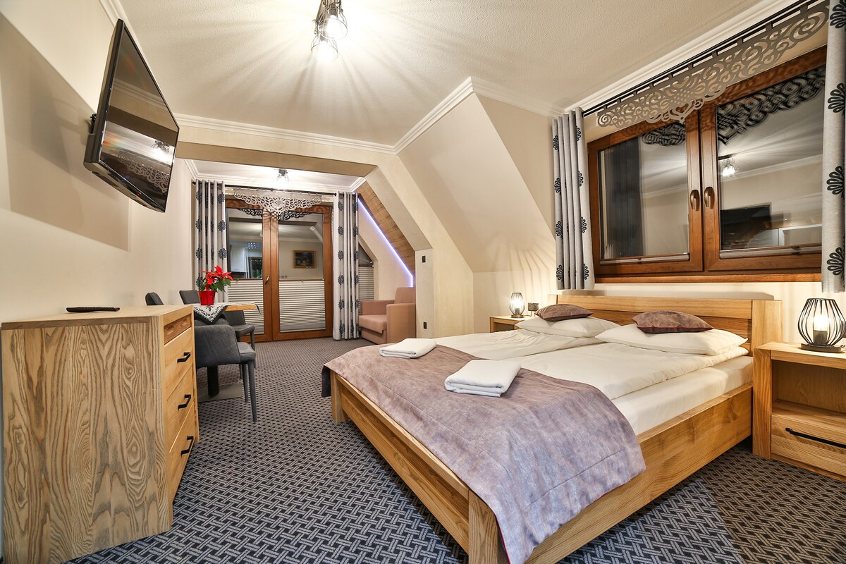 Nous vous invitons à découvrir notre établissement récemment construit : 102 maisons jumelées avec vue sur GIEWONT. La maison "Jeleń" est décorée dans un style moderne, avec un intérieur lumineux et spacieux et de beaux papiers peints, avec un motif de cerf. La maison est située dans une partie calme du pittoresque Kościelisko. Cet endroit est un excellent point de départ pour des randonnées à pied et à vélo.